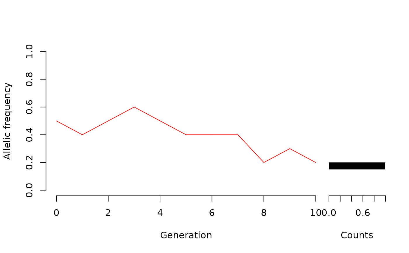 sim2 <- WFDriftSim(Ne = 5, n.gen = n.gen_2ndsim, p0=sim1[,ncol(sim1)],