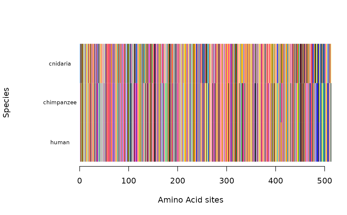 plotProteinSeq draws the sequences of proteins within the same "ProteinSeq" object. In this format, more similar sequences will have